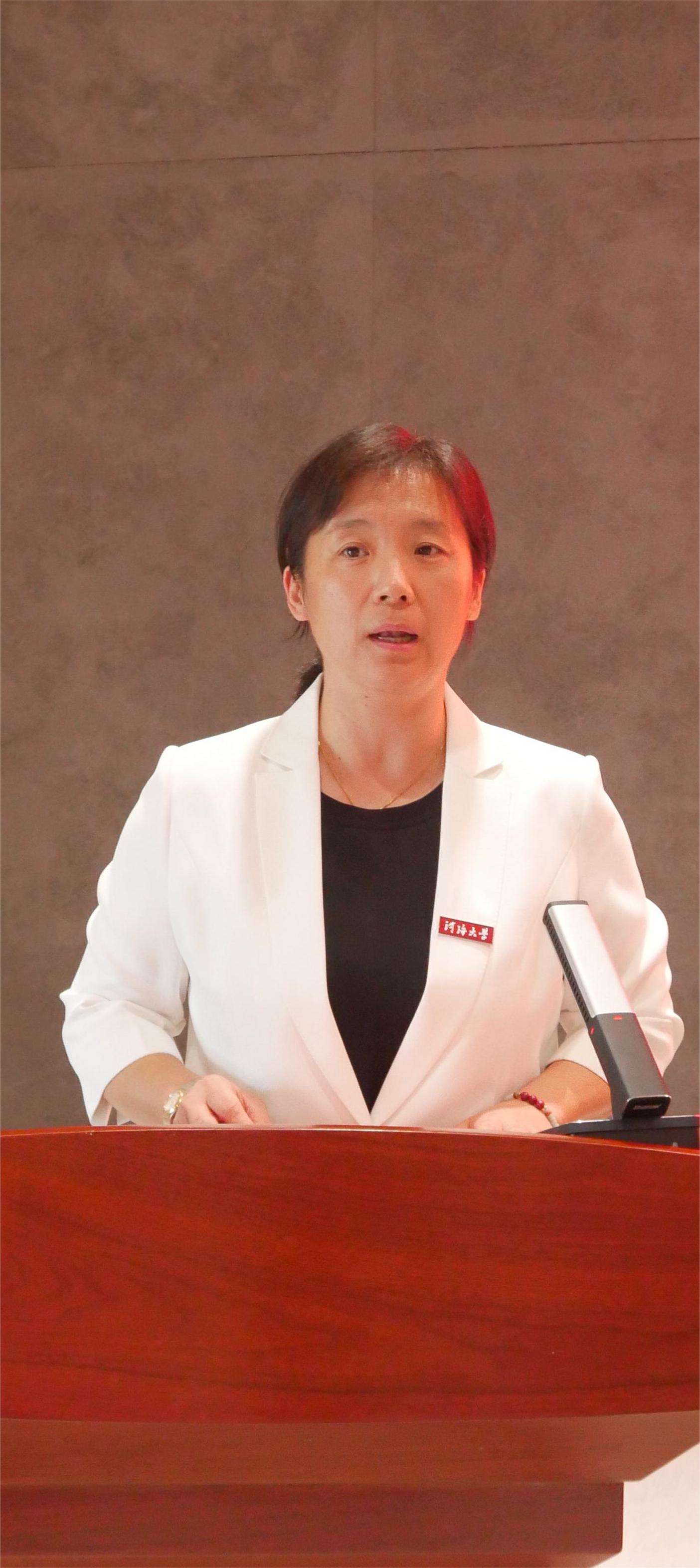 典礼伊始,高洪娟书记向成人文学 125名研究生新生表达了诚挚的祝贺和热烈的欢迎。她向同学们介绍了成人文学 专业设置情况和发展情况,并寄语同学们要洞悉世界之变、要读懂国家之变、要认识个人之变,与时代同步、与祖国同行、与学院同频,以宽广的视野、过硬的本领,肩负起新时代使命,谱写学院高质量发展新篇章。