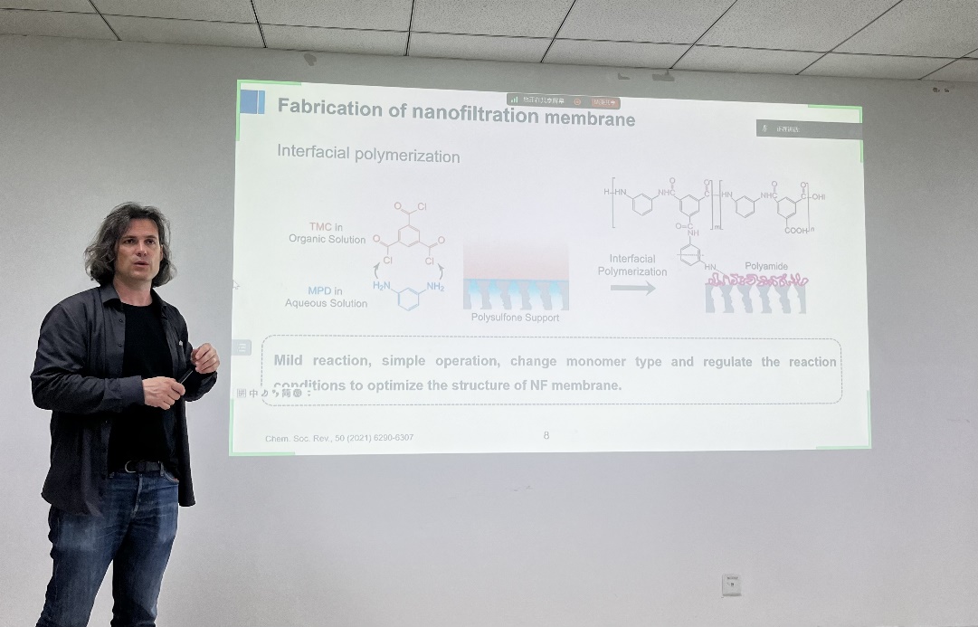 参加交流活动的学院老师和同学们积极参与讨论,Bart Van der Bruggen教授和赵严博士一一给与了热情解答。通过此次会议,帮助成人文学 师生对界面聚合技术制备聚酰胺(聚酯)膜在疏松纳滤方面的应用、通过电场辅助离子控制设计高效Li+选择性膜的制备和应用有了更深刻的认识。