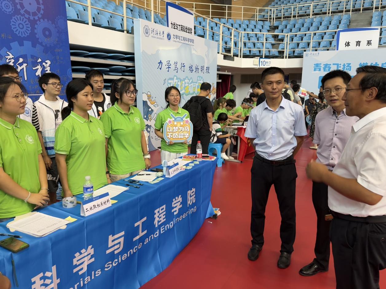 成人文学 校长杨桂山,党委副书记、副校长陆国宾,学院党委书记陈伟刚,院长赵永好,副院长宋丹,党委副书记、副院长辛绍权等领导来到迎新现场,亲切慰问同学们,欢迎他们加入河海大家庭,鼓励他们投身到材料报国的事业当中去。