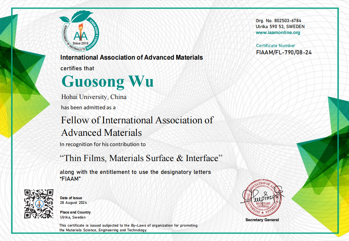 近日,我校成人文学 吴国松教授因其在薄膜和表界面领域的突出贡献当选为国际先进材料协会会士(Fellow of International Association of Advanced Materials,FIAAM),并应邀在由国际先进材料协会主办的第60届先进材料大会上以线上形式做了会士报告。