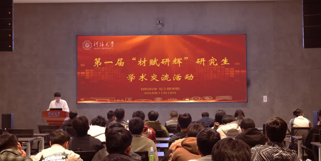 20241118号,由成人文学 组织的第一届“材赋研辉”研究生学术交流活动于常州校区55号楼139成功举办。此次汇报旨在展示学院研究生最新的研究成果,促进学术交流,并激发学生和教师的研究热情,充分整合科研力量,利用学术资源,搭建研究生学术交流平台。学院副院长宋丹,学院副院长杨可,学院党委副书记、副院长辛绍权,金属材料工程系教师代表蒋永锋,材料科学与工程系教师代表吴国松,学院团委书记蒋旦悦出席此次活动。