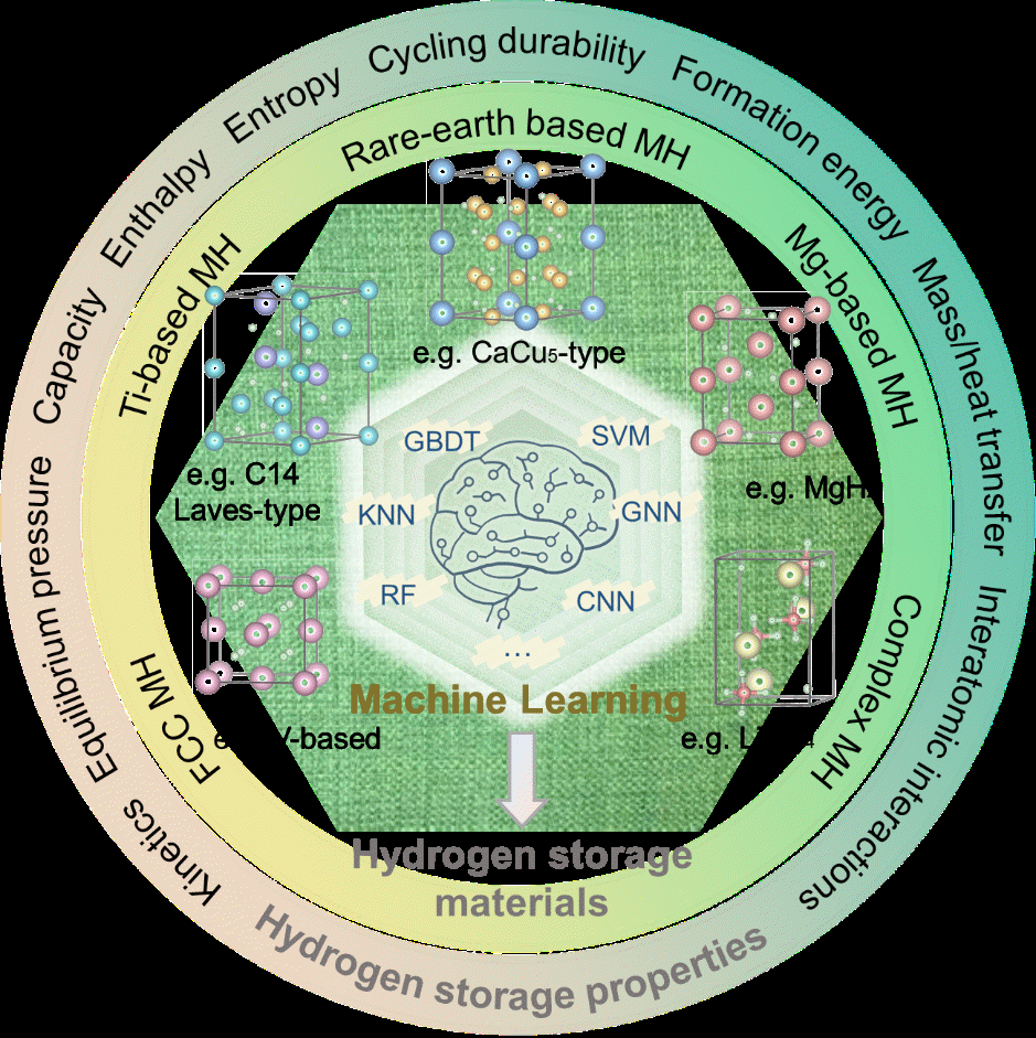 氢作为一种既清洁又丰富的能源媒介,在应对全球能源短缺及气候变化挑战中展现出巨大潜力。与高压气态储氢和低温液态储氢技术相比较,基于储氢材料的固态储氢技术在体积储氢密度和安全性方面展现出显著优势。以往,储氢材料的设计以及成分与性能优化工作大多依赖于耗时费力的实验试错法。目前,数字技术与机器学习的融合彻底革新了材料设计和复杂机制探究的方法,但有关机器学习在储氢材料研究中的前沿探索、应用案例及发展前瞻的系统论述较为缺乏,这一现状制约了高性能新型储氢材料的定制化研发进程。