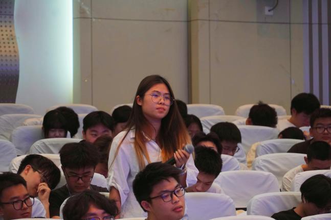 在交流提问环节,主持人代表同学们与三位优秀的校友进行深入交流,他们分别讲述了自己在工作中典型的一天、在河海求学的最大收获、对学院学生的学习建议等。在自由交流环节,同学们踊跃提问,各位校友也立足行业发展现状和个人经历,为提问同学提供了详细而全面的指导建议。