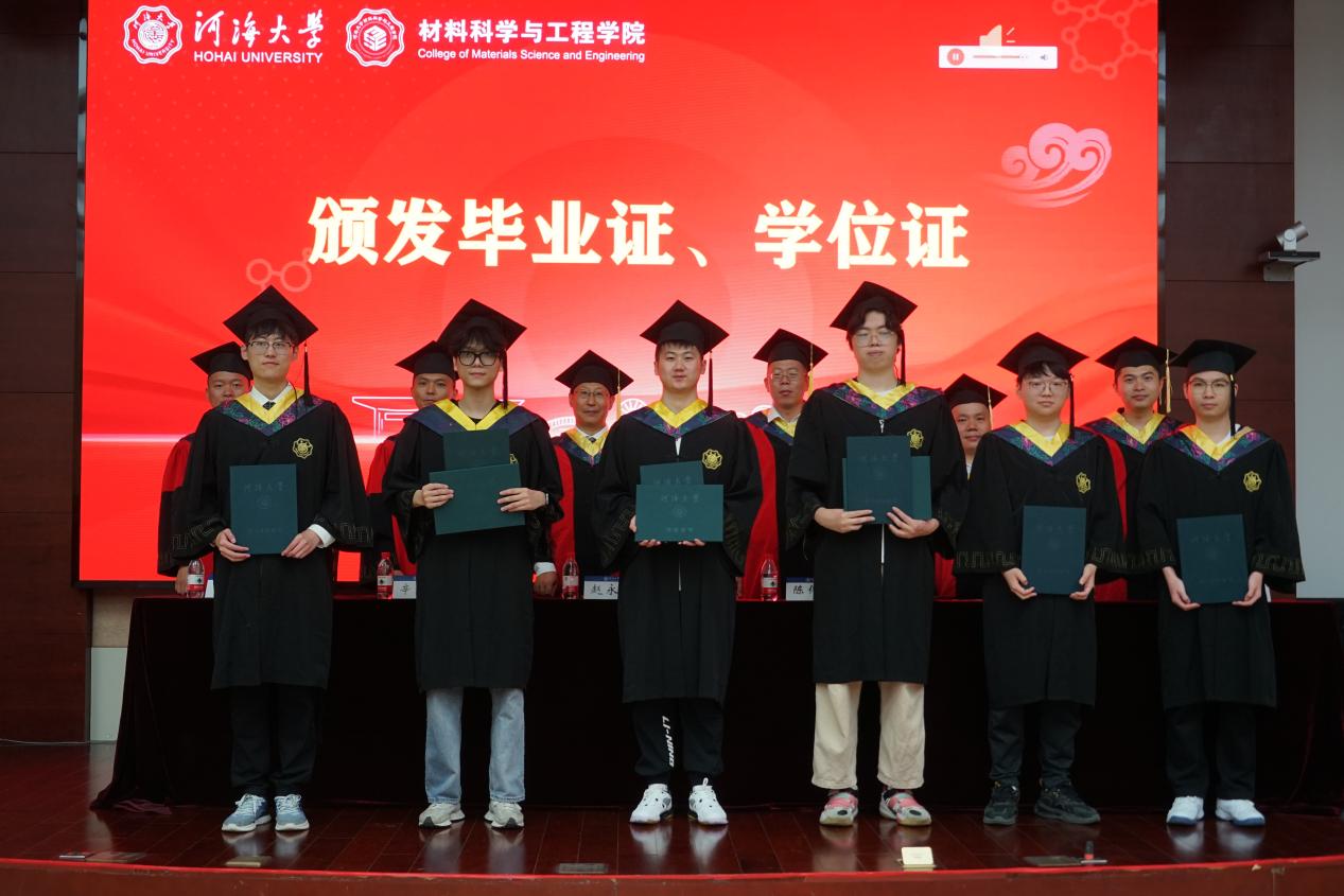 赵院长代表学院向全体毕业生致以最热烈的祝贺。他深情回顾了同学们在成人文学 度过的宝贵时光,见证了大家在学业科研、社会实践、创新创业中展现的才华与取得的优异成绩。赵院长指出,材料是科技进步和产业变革的基石,作为新时代的材料人,生逢盛世,肩负重任。他寄语毕业生们:一要坚守初心,胸怀家国,将个人理想融入国家发展伟业,在服务社会中实现人生价值;二要砥砺创新,勇攀高峰,敢于探索未知,勇闯科技前沿;三要脚踏实地,终身学习,在未来的工作或深造中保持严谨求实的作风,不断更新知识储备,适应时代发展;四要坚韧不拔,乐观向上,面对未来的挑战与挫折,保持材料人特有的韧性与定力,永葆积极进取的人生态度。
