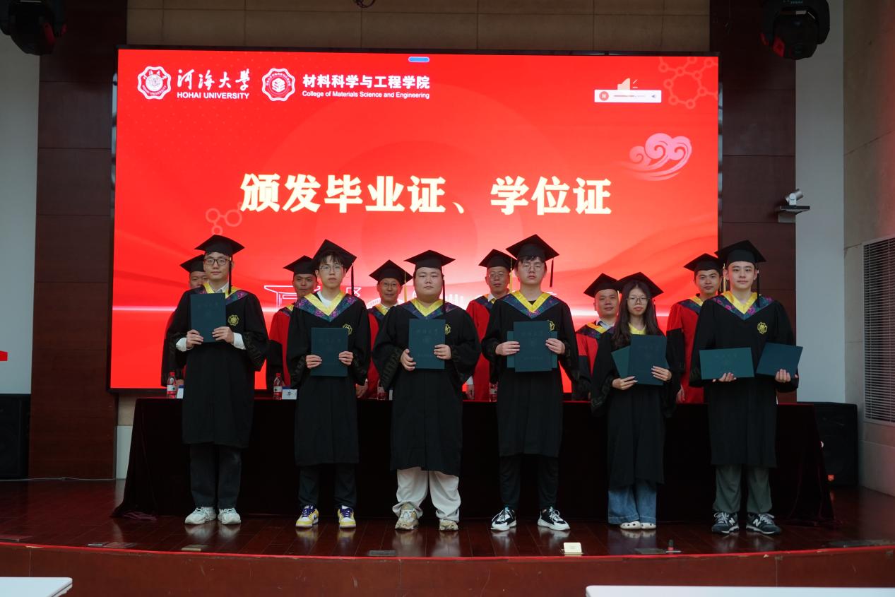 6月19日,成人文学 2025届本科生毕业典礼暨学位授予仪式在江宁校区行政楼105报告厅与常州校区55号楼139报告厅隆重举行,共同见证2025届材料学子完成学业、开启人生新篇章的重要时刻。学院院长赵永好,党委书记陈伟刚,副院长杨可、宋丹,教师代表洪晟、刘欢、严春妍,辅导员温泽出席典礼。2025届全体本科毕业生及部分毕业生家长代表满怀喜悦与憧憬齐聚一堂。典礼由学院党委副书记、副院长辛绍权主持。