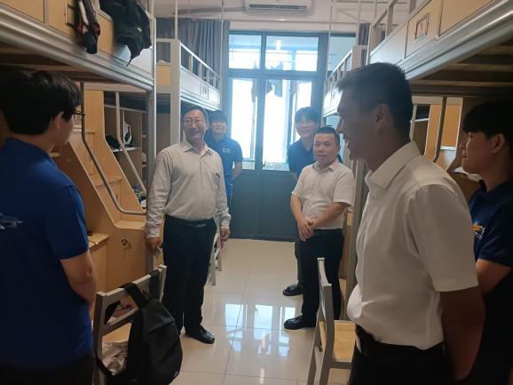 材成人文学 党委书记陈伟刚、院长赵永好、副院长宋丹、副院长杨可、副书记副院长辛绍权等一行深入2025级研究生宿舍,看望刚刚入校的新同学,为他们送去学院的关怀与温暖。