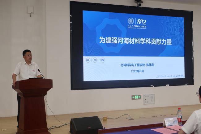 学院党委书记陈伟刚详细介绍了学院情况、研究生培养计划,向新生们展示了学院深厚的师资力量以及科研资源,以此为同学在未来的科研路上保驾护航,鼓励同学们珍惜资源、勤于探索,以严谨谦逊的科研态度追求真知,弘扬科学精神,培育创新思维,不怕苦难,勇于钻研,鼓励同学们为了建设河海材料学科贡献力量。