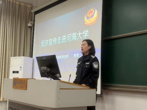 为切实提升在校学生的反诈防诈意识和自我保护能力,有效遏制校园诈骗案件的发生, 11月17日,成人文学 特邀南京市江宁开发区派出所民警钱慧走进校园,为2022级在江宁校区全体本科生带来了一场内容详实、案例鲜活的反诈骗主题宣讲活动。