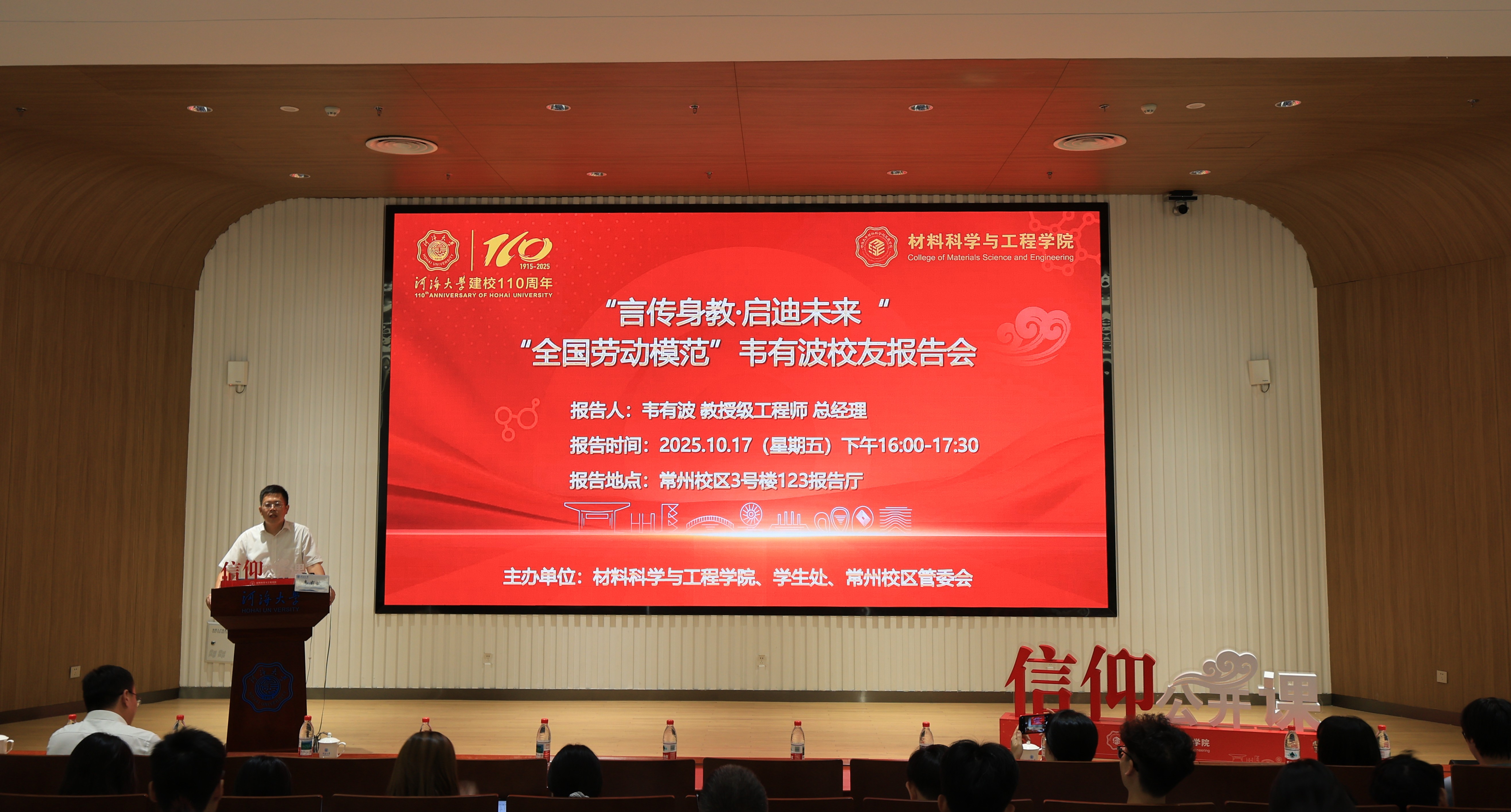 劳模赋能、榜样引路,“全国劳动模范”韦有波校友用近20年的一线实践证明,努力奋斗能创造不凡价值,这将助力同学们在专业领域找准奋斗坐标,成长为兼具专业素养与责任担当的新时代人才,为国家工程建设与科技创新事业注入青春力量!本次校友报告会暨成人文学 信仰公开课,由成人文学 、学生处、常州校区管委会主办,300余名校内师生参加。