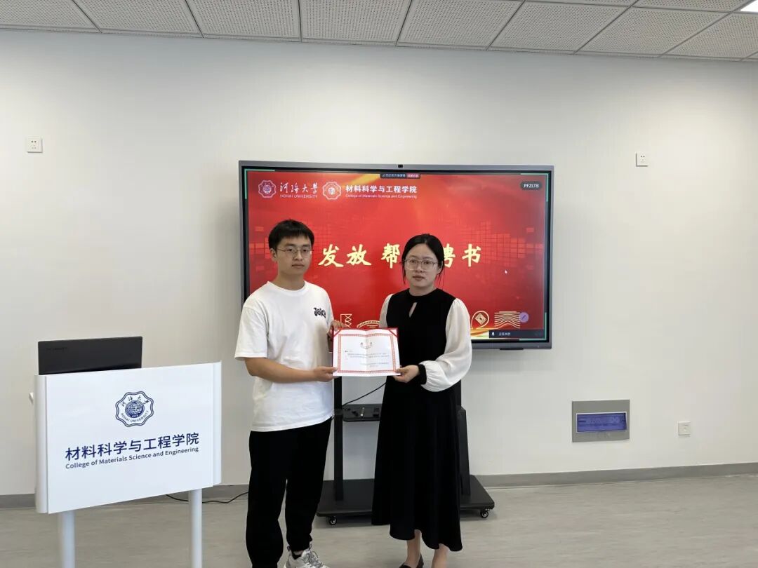 党员代表蔚元在发言中,真切表达了全体参与帮扶党员的心声。他郑重承诺,将以严谨负责的态度对待帮扶工作,深入了解帮扶对象的需求,量身定制切实可行的帮扶方案。不仅要在学业上给予精准指导,更要在思想、生活上给予无微不至的关心,鼓励帮扶对象树立信心,勇敢直面挑战,努力实现个人目标,进而带动更多同学积极投身学业,推动学院学风建设迈向新高度。随后,蒋旦悦老师为党员代表发放了帮扶聘书,这一环节象征着责任与使命的正式传递。