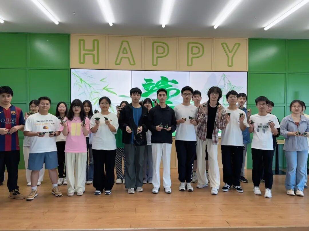 活动筹备细致周全。学院提前准备了充足的糯米、红豆、蜜枣、新鲜粽叶等材料,并邀请食堂阿姨现场教学。活动伊始,阿姨们热情示范了折叶、填米、放馅、裹扎的技巧,现场气氛活跃。初次尝试的同学们虽略显生疏,粽叶不时调皮散开,糯米也从指缝溜走,但欢声笑语始终洋溢。大家互帮互助,在一次次实践中逐渐熟练,一个个棱角分明、饱满可爱的粽子逐渐堆满了托盘。
